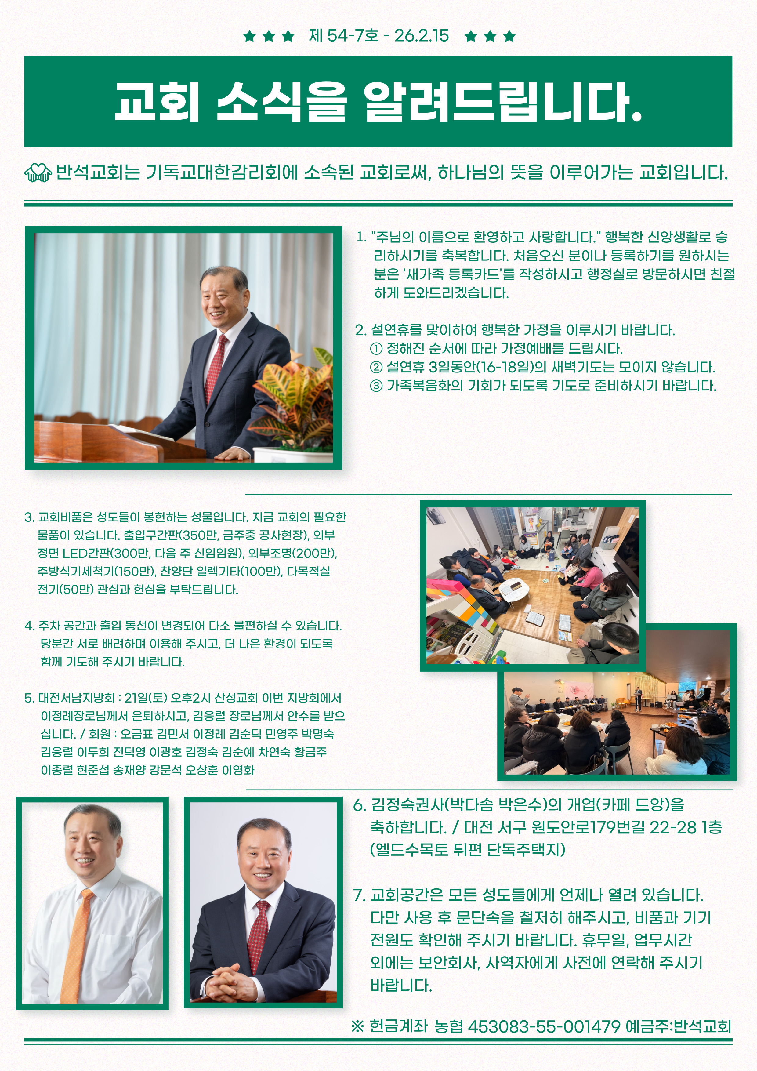 2월 셋째주(2월 15일) 교회소식